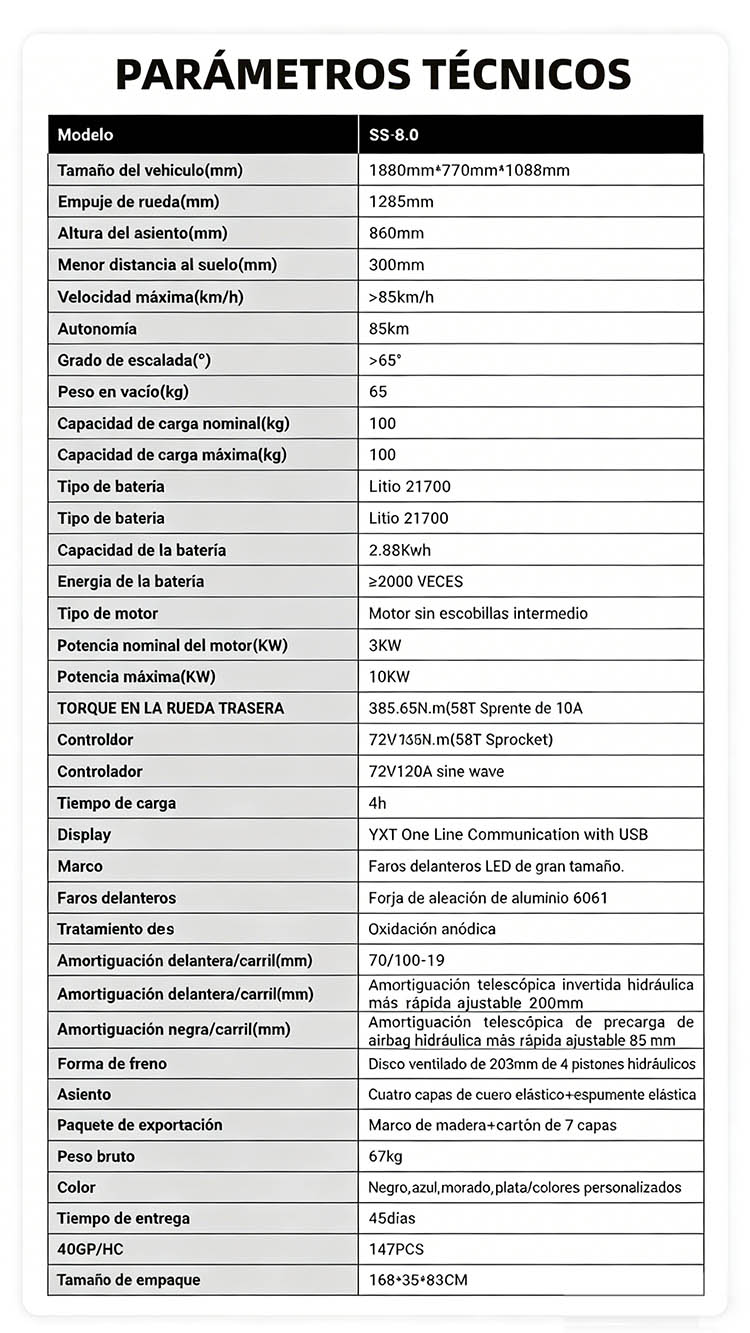 Tamaño del vehículo: 1880 mm x 770 mm x 1088 mm